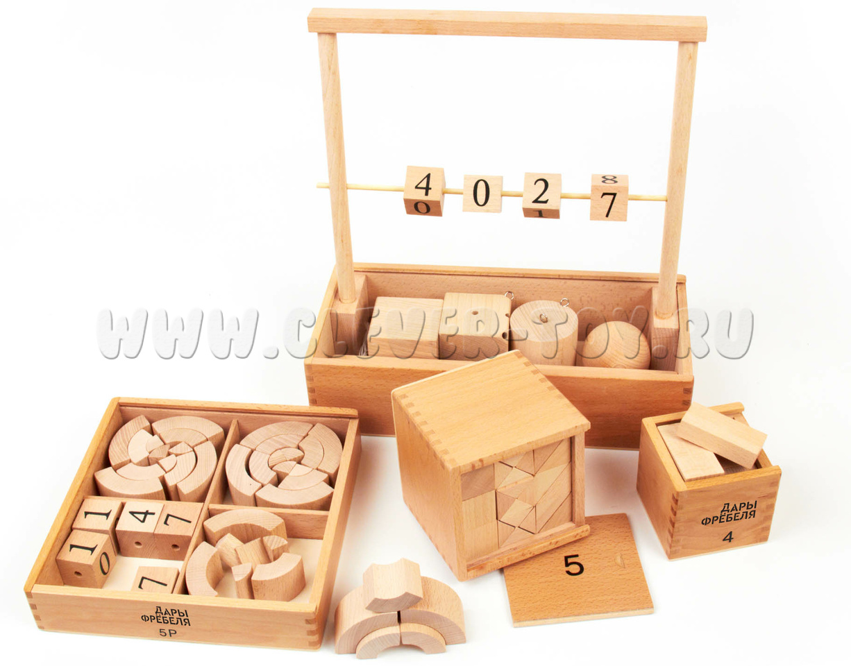Игровой набор "Дары Фребеля" изготовлен из качественных натуральных материалов (дерева и хлопка). В комплекте 14 модулей и 6 методических пособий соответствующих ФГОС ДО.