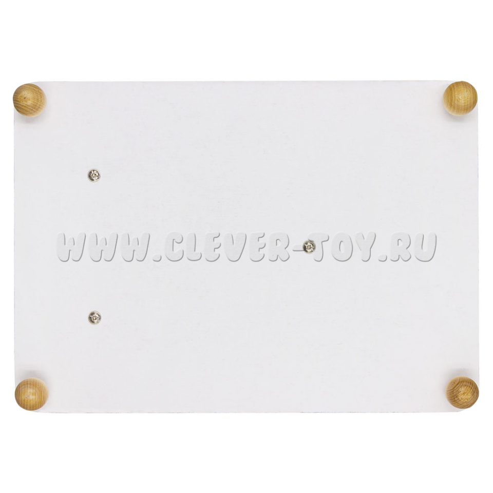 Фигуры расположены вокруг циферблата. С обозначением цифр от 1 до 12, разной формы и разных цветов. Поможет малышу познакомиться с геометрическими фигурами, развить логику, мелкую моторику. - Держатели-шарики по углам 4 шт.