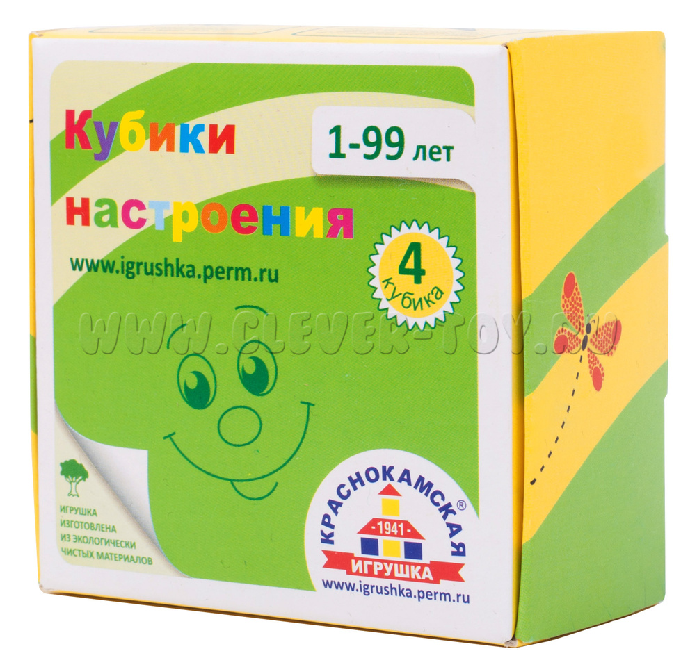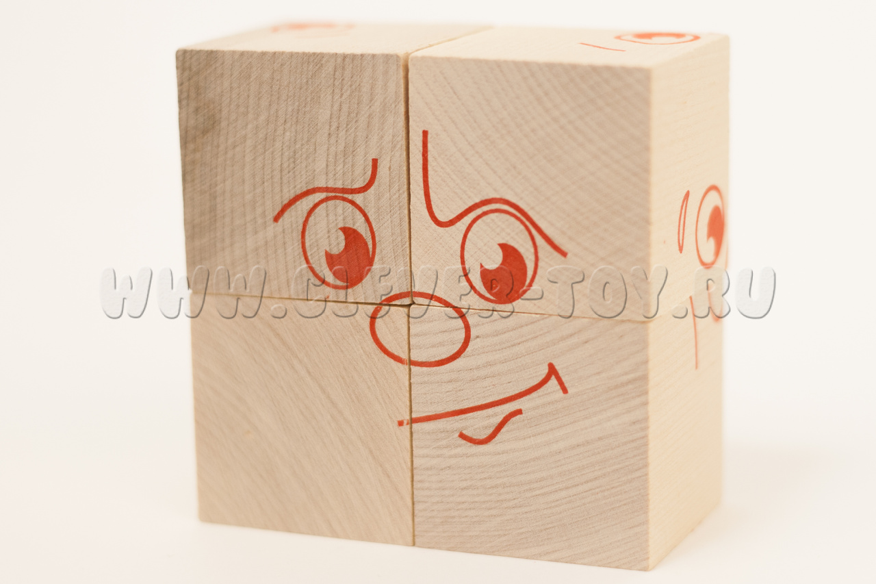 В состав входит четыре кубика, из которых ребенок может собрать 6 изображений, передающих настроение.