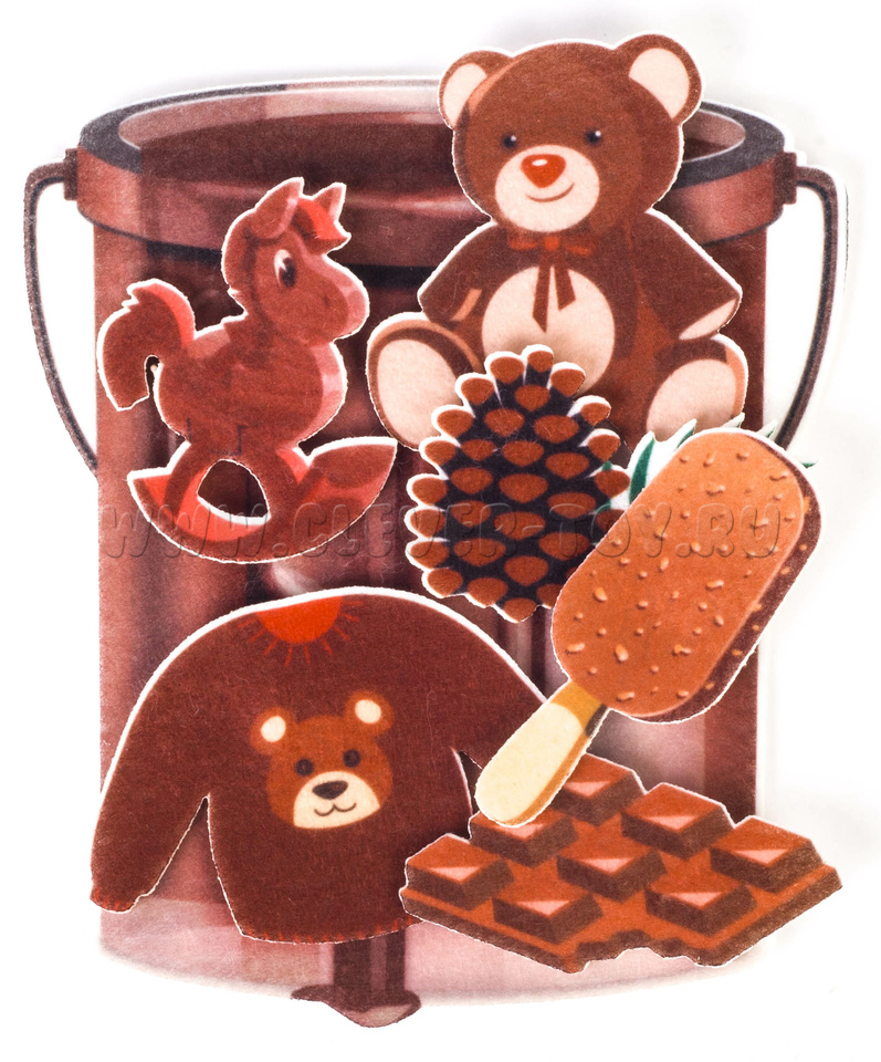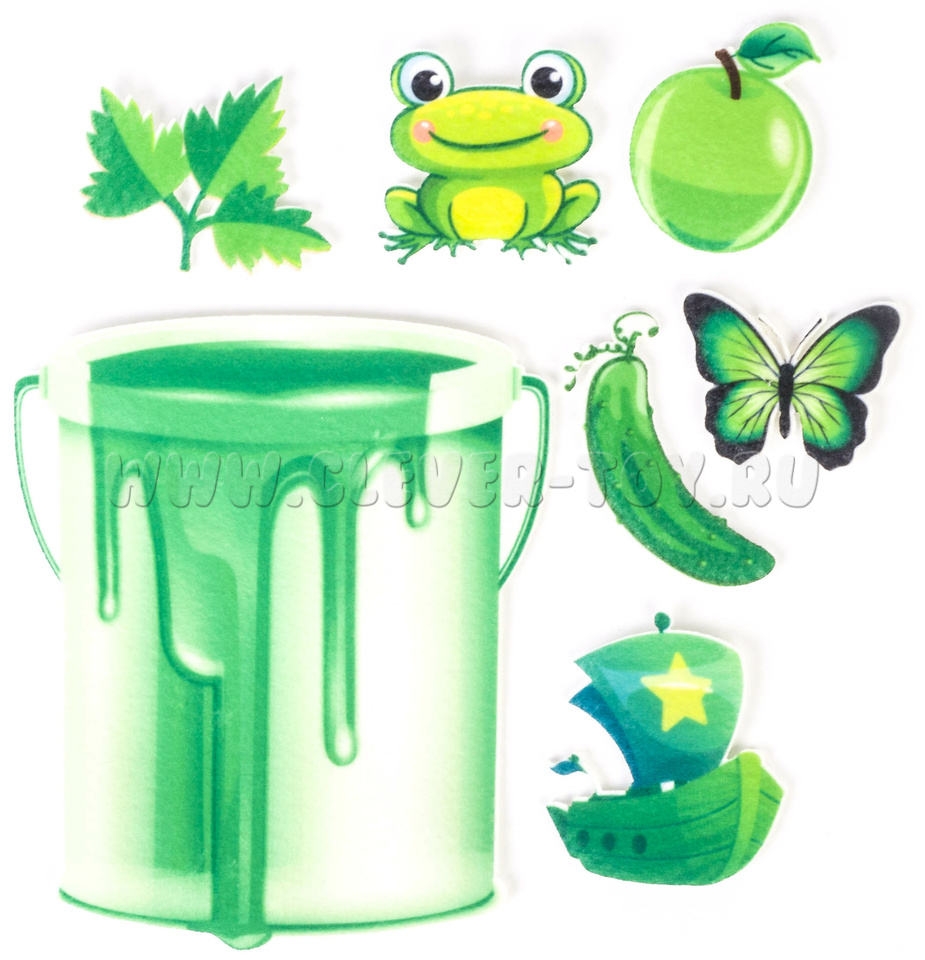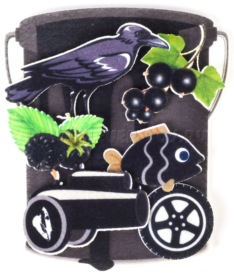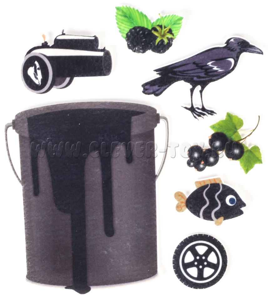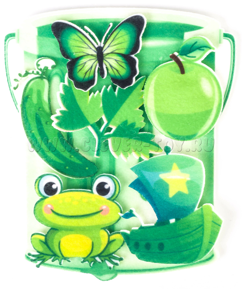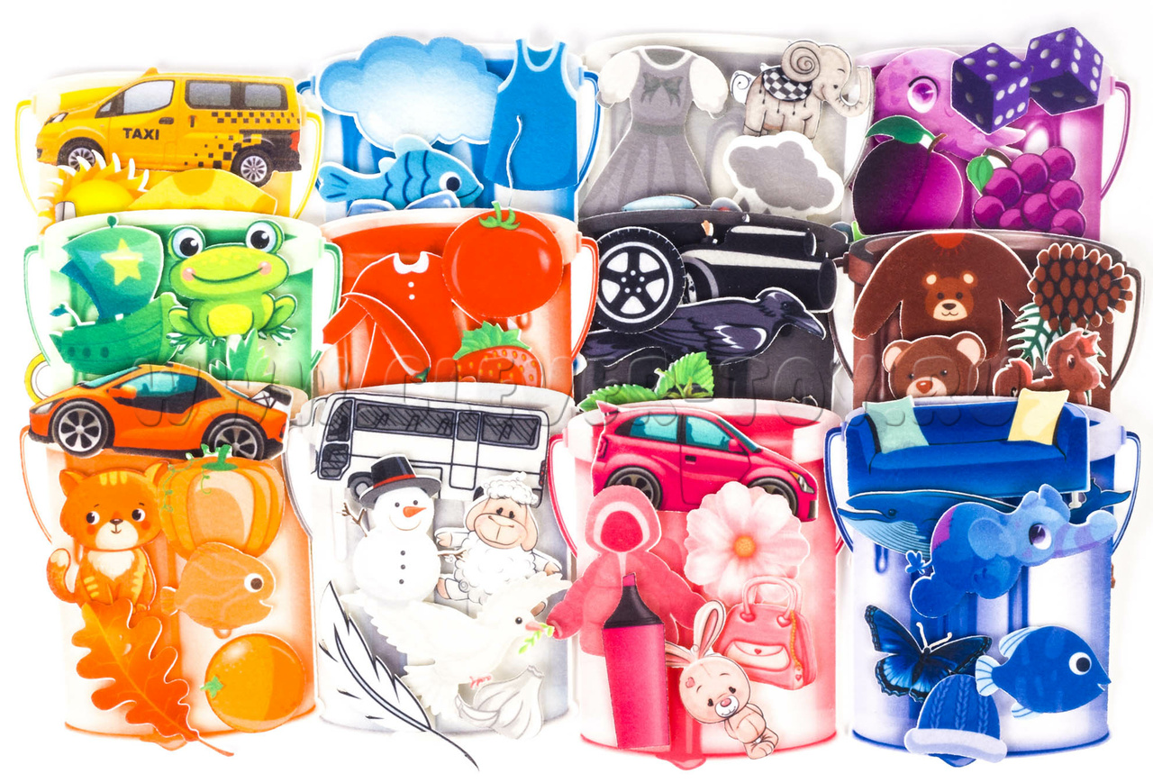 • 12 фетровых фигуры с изображением разноцветных ведёрок,