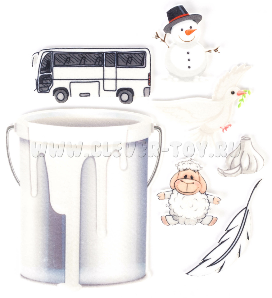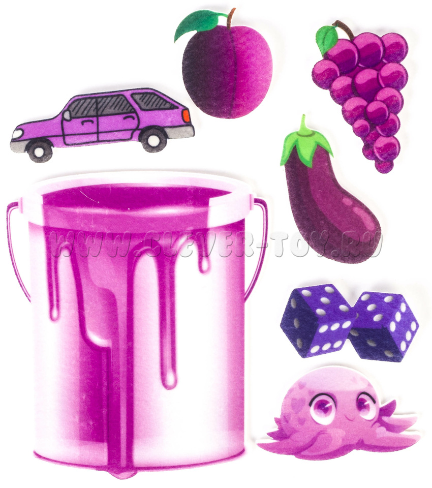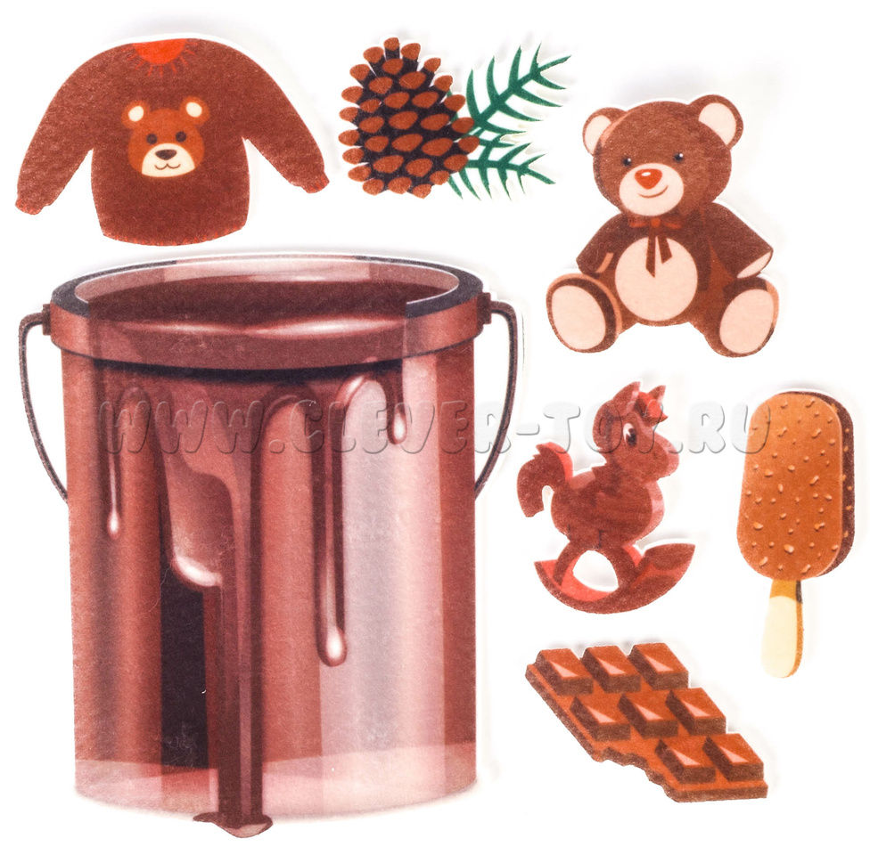 • элементы на липучках с изоброжением шоколада, винограда, автомобилей, снеговика, мороженого, одежды, ягод и т.д..