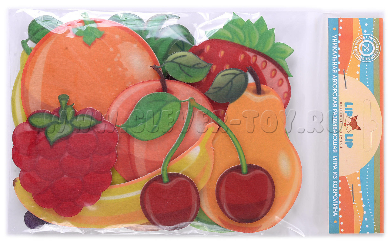 Красочная развивающая игра - конструктор из фетра для детей старше 3-х лет «Фрукты» с многоразовыми липучками.