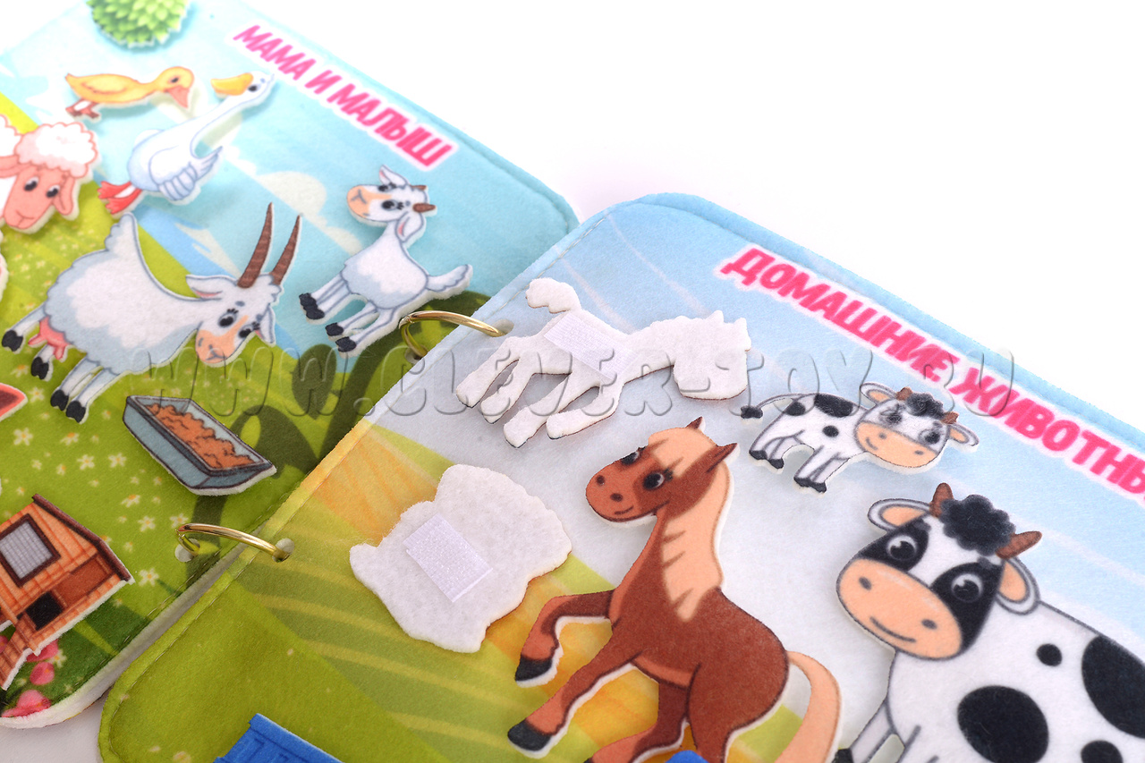 Новинка в среде развивающих игрушек – книга – ковролиновый конструктор , количество игр с которой ограничено только вашей фантазией. Фигурки из ковролина выполнены с большой долей реалистичности, находятся на липучках, что помогает превратить книгу в плоскостной динамический театр.