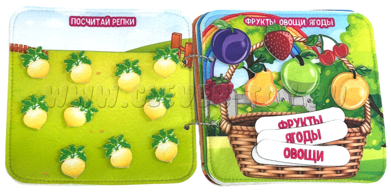Книга из ковролина рекомендована специалистами дошкольного образования, используется в детских садах и развивающих центрах, а теперь доступна по выгодной цене для домашнего использования и для самостоятельной игры детей.