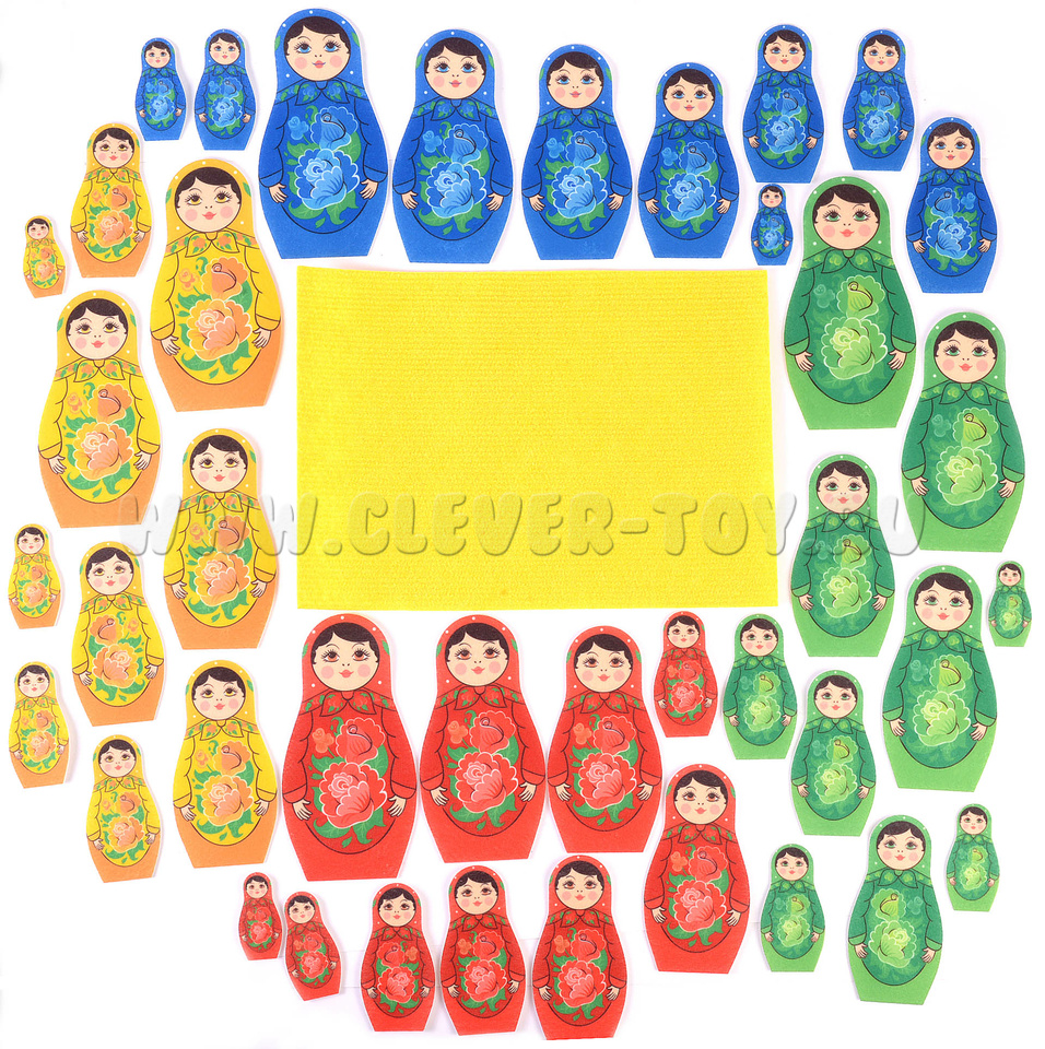 Игровое поле 25*35см, 40 матрешек высотой от 6 до 20см.
