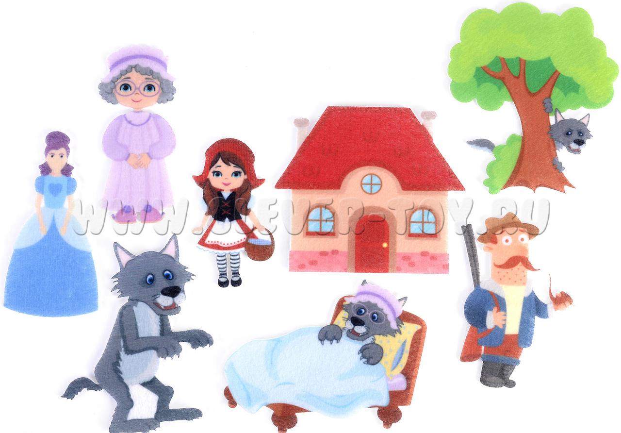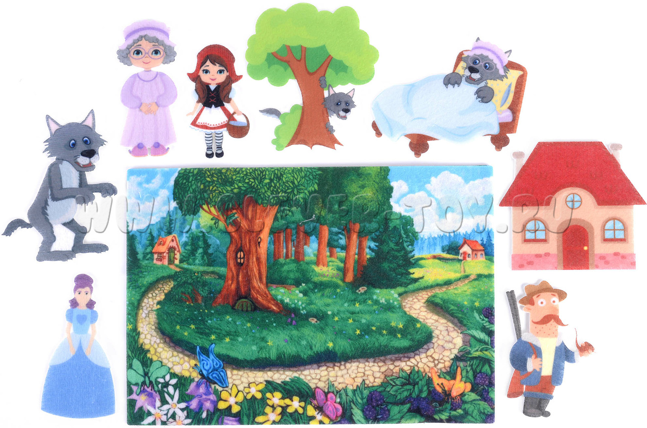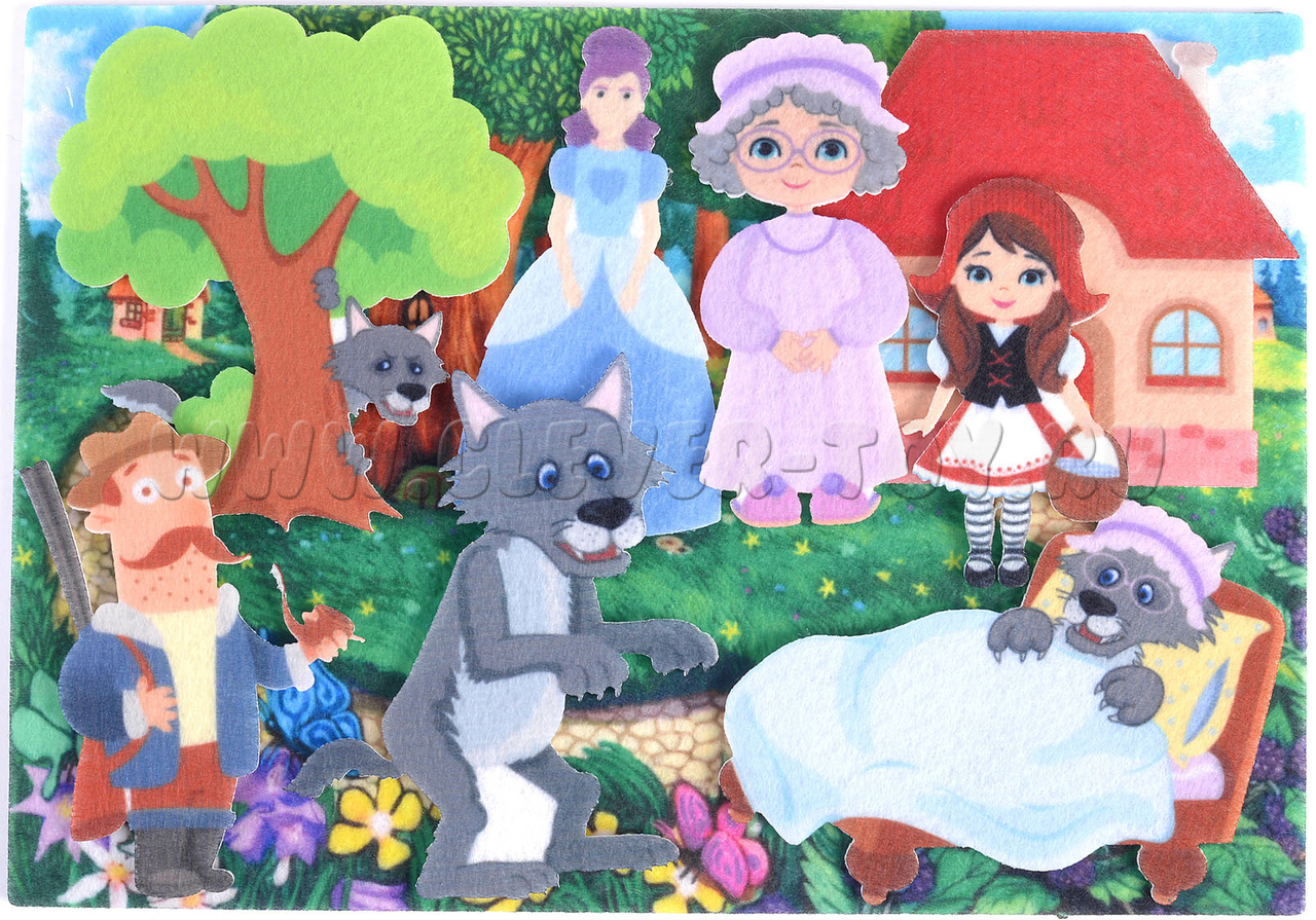 • Фигурки персонажей: Красной Шапочки, бабушки, волка в двух образах, мамы и охотника (6 шт.).