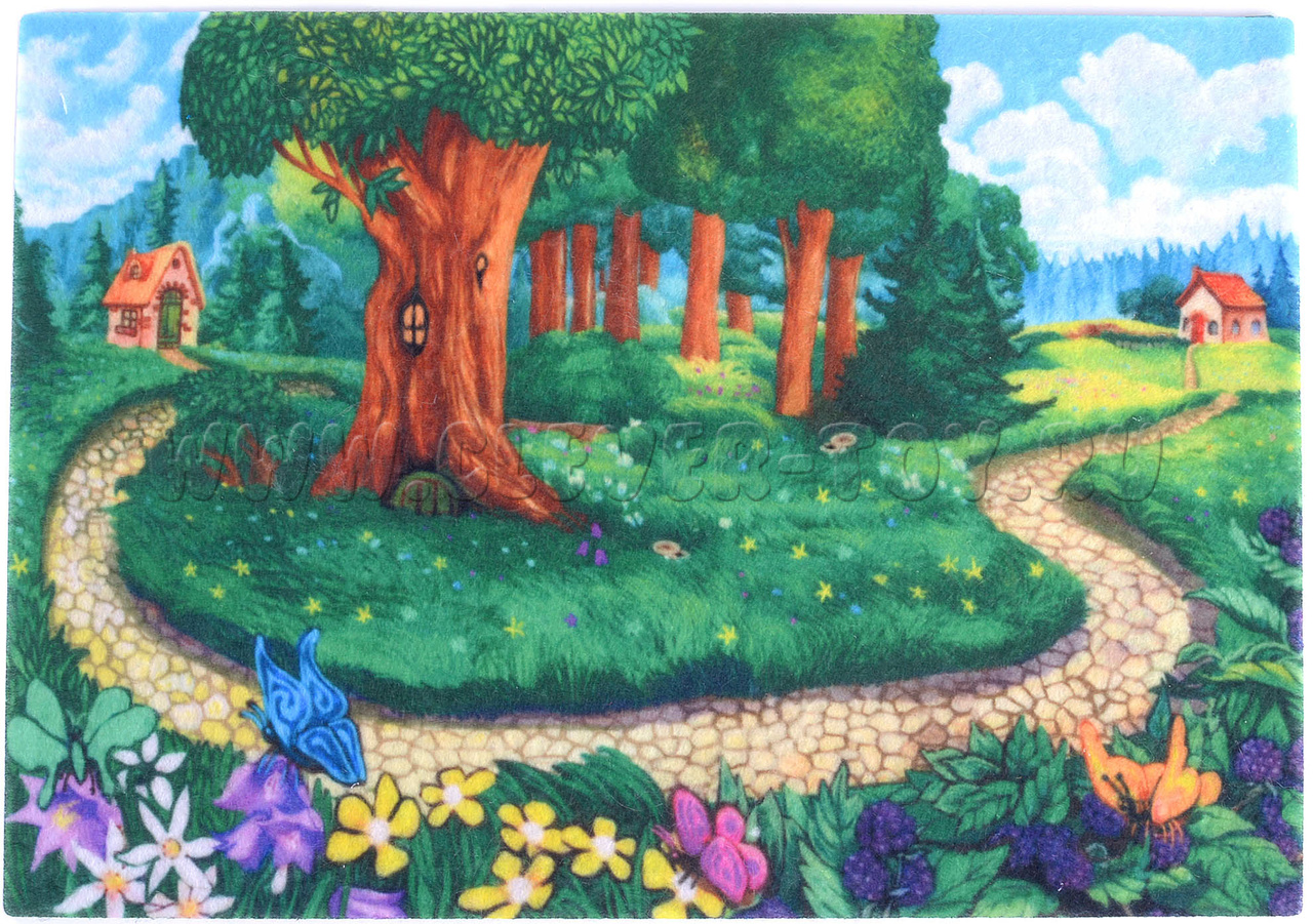 • Игровое поле с изображением лесной тропинки от домика Красной шапочки к домику бабушки;
