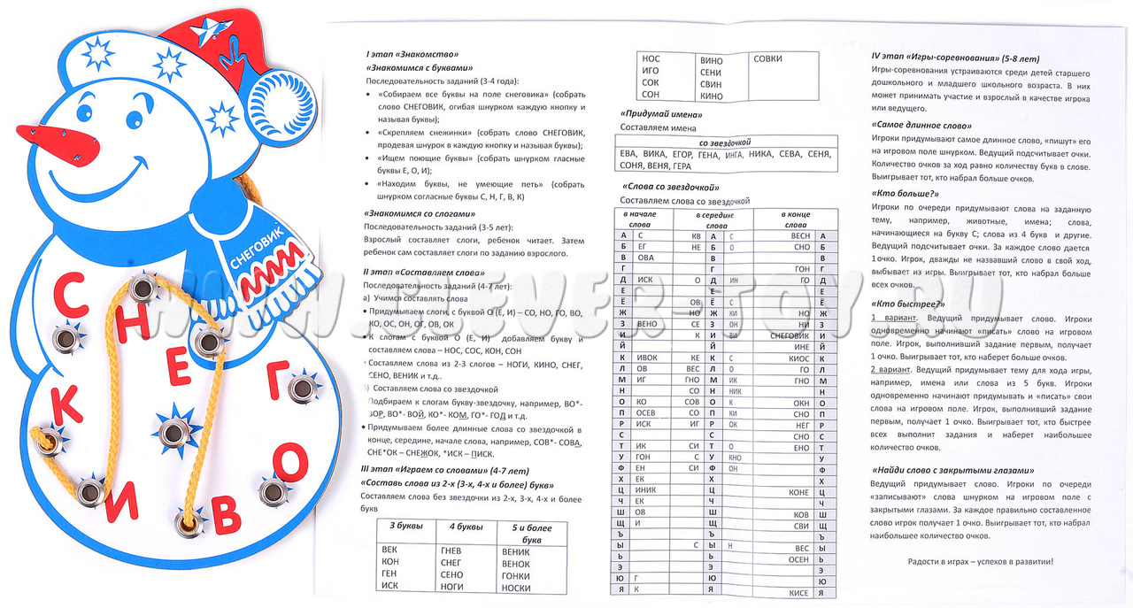 С помощью данной игры можно составить около 200 слов. В инструкции даны примеры заданий.