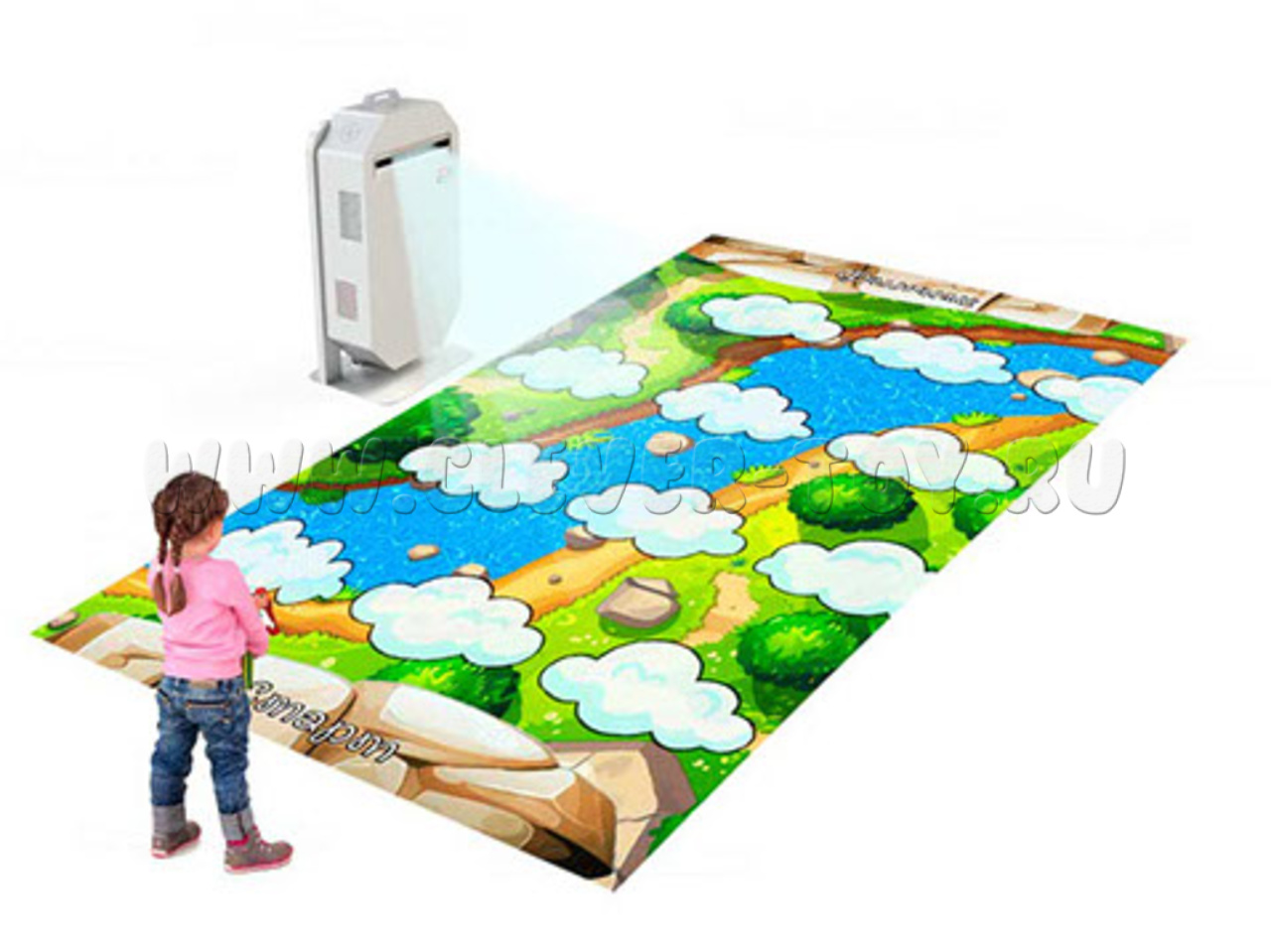 Оборудование оснащено премиальным проектором, который обеспечивает большую, яркую и насыщенную картинку. Внутри антивандального корпуса надежно защищены все важные компоненты: проектор, датчик, компьютер и провода.