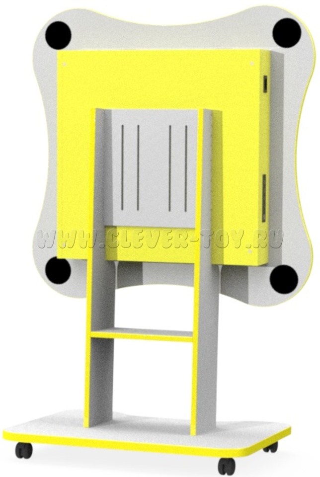 Благодаря особой конструкции складных ножек, комплекс мгновенно превращается в интерактивный стол. Ножки стола - телескопические, позволяют легко подобрать оптимальную высоту стола под ростовую группу.