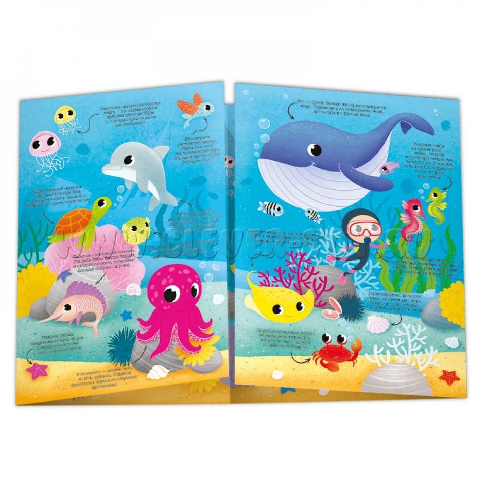 Книжка-панорама с наклейками. Подводный мир. 22х29,7 см.