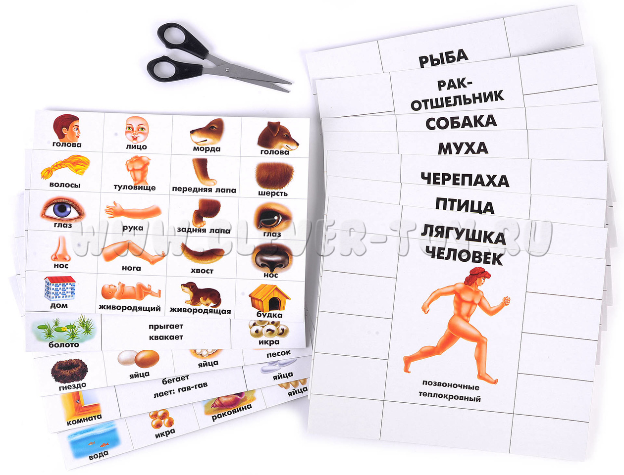 - Ведущий показывает маленькие карточки с частями тел, а дети смотрят, подходят ли они их животному. Кто первым правильно закроет большую карту, тот и выигрывает.