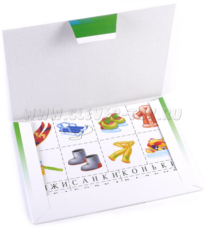 Раздайте детям карточки с таблицами и предложите найти в таблице слова и прочитать их. Затем покажите карточки с предметами. Пусть дети выберут картинки, на которых есть названия предметов из таблицы. После этого нужно закрыть слова в таблице карточками со словами.Попросите детей назвать темы, на которые они собрали картинки («Зима», «Огород» и так далее).