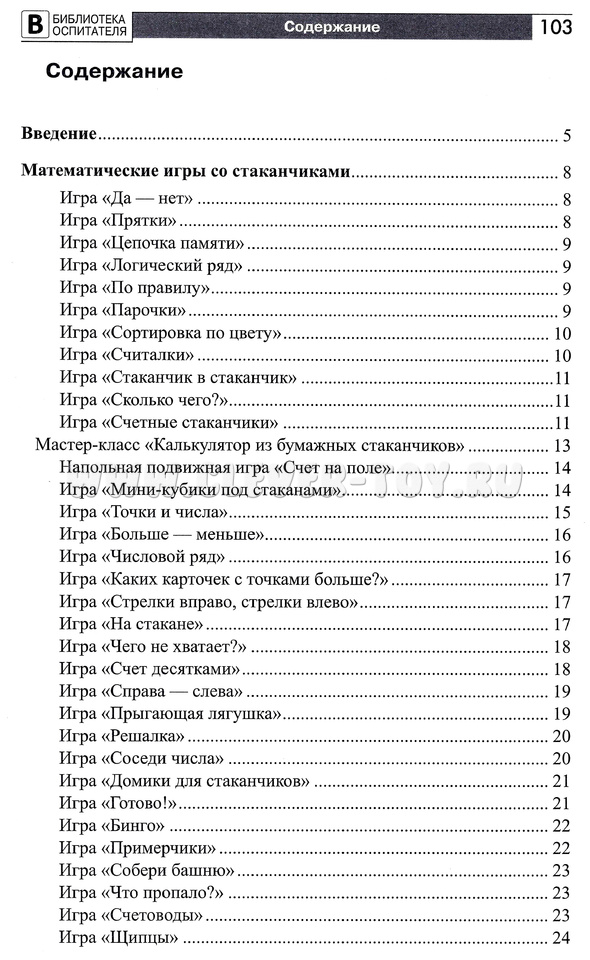 Из книги вы узнаете об интеллектуальных, музыкальных, математических, речевых играх со стаканчиками, об опытно-экспериментальной деятельности.
