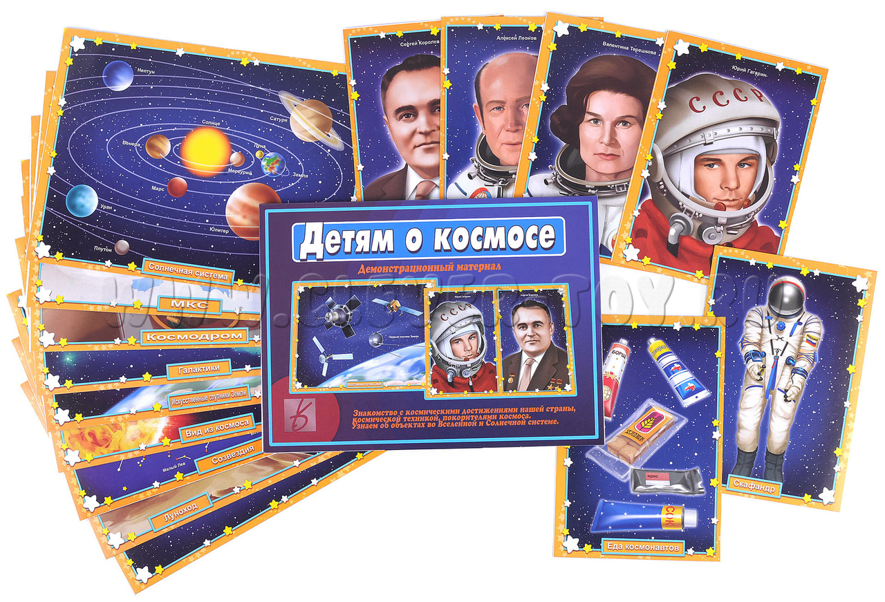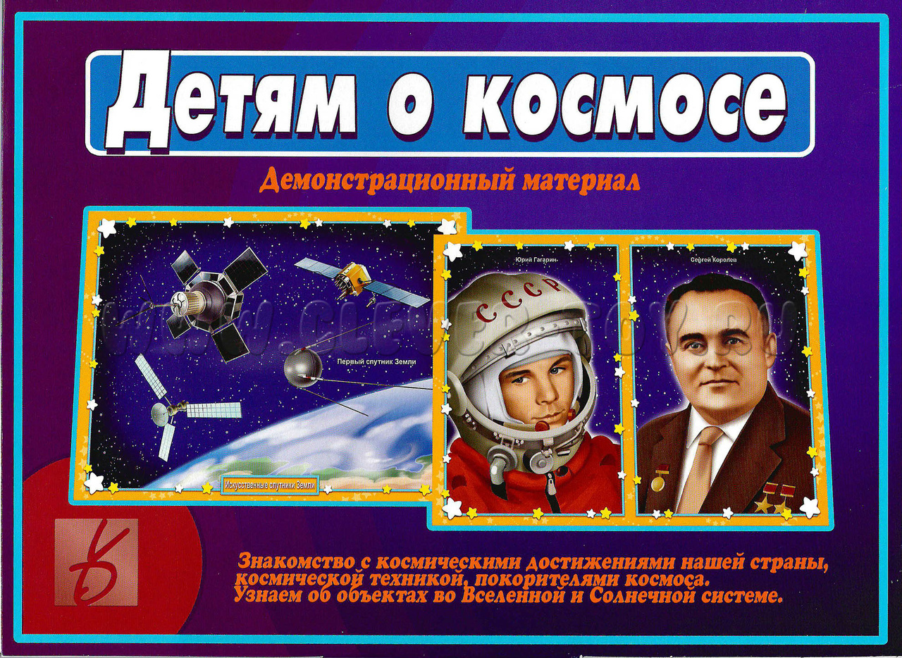 Демонстрационный материал "Детям о космосе" адресован родителям, воспитателям и методистам детских садов и дошкольных образовательных учреждений и нацелен на формирование у детей первичных представлений о Космосе и Вселенной, личностях и достижениях выдающихся космонавтов и конструкторов, знаковых событиях Российской космонавтики в процессе ее становления и развития.
