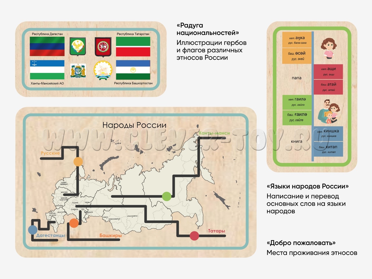 Комплект образовательных стеновых панелей для развития у дошкольников представлений о национальном многообразии Российской Федерации.