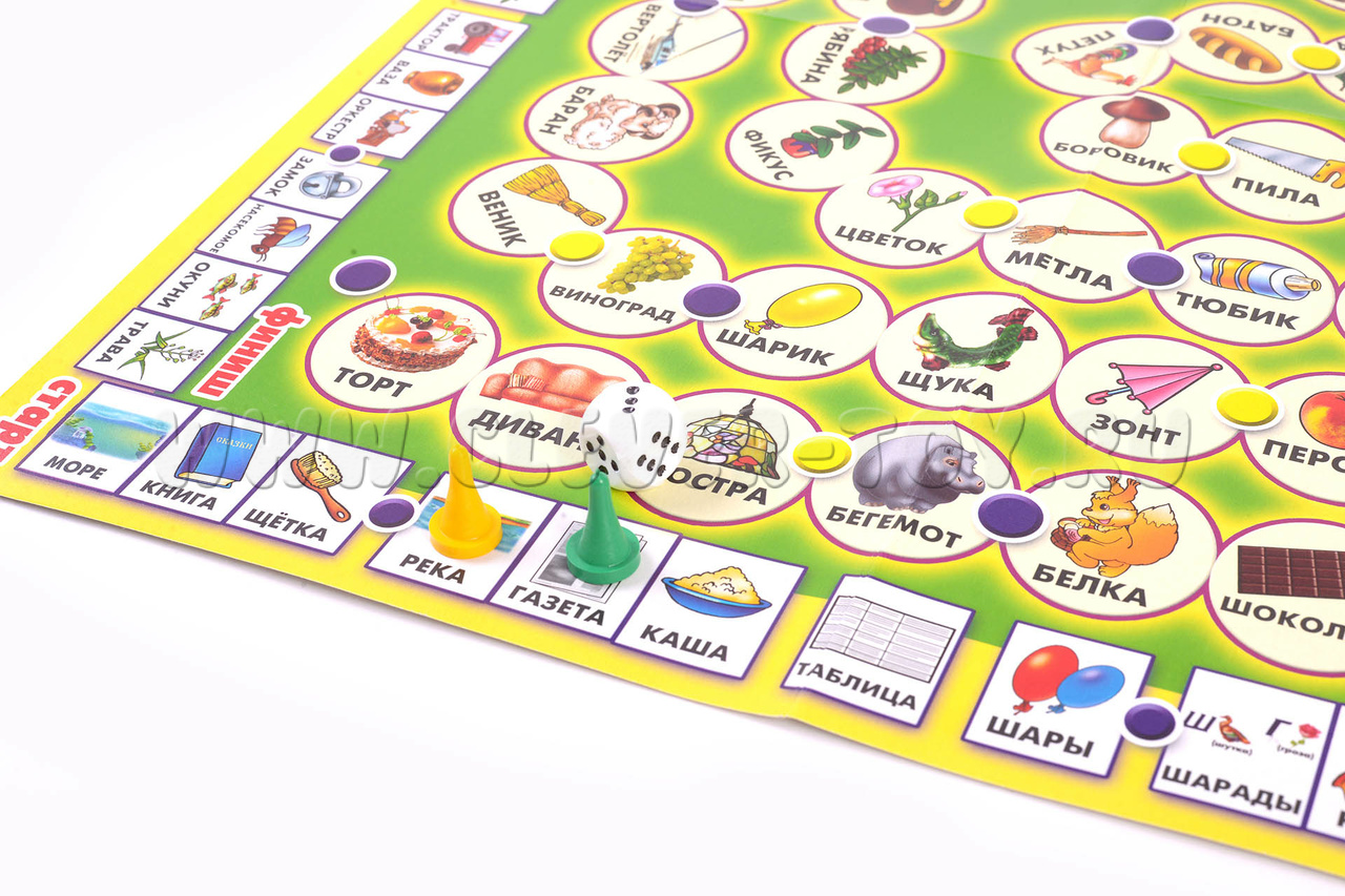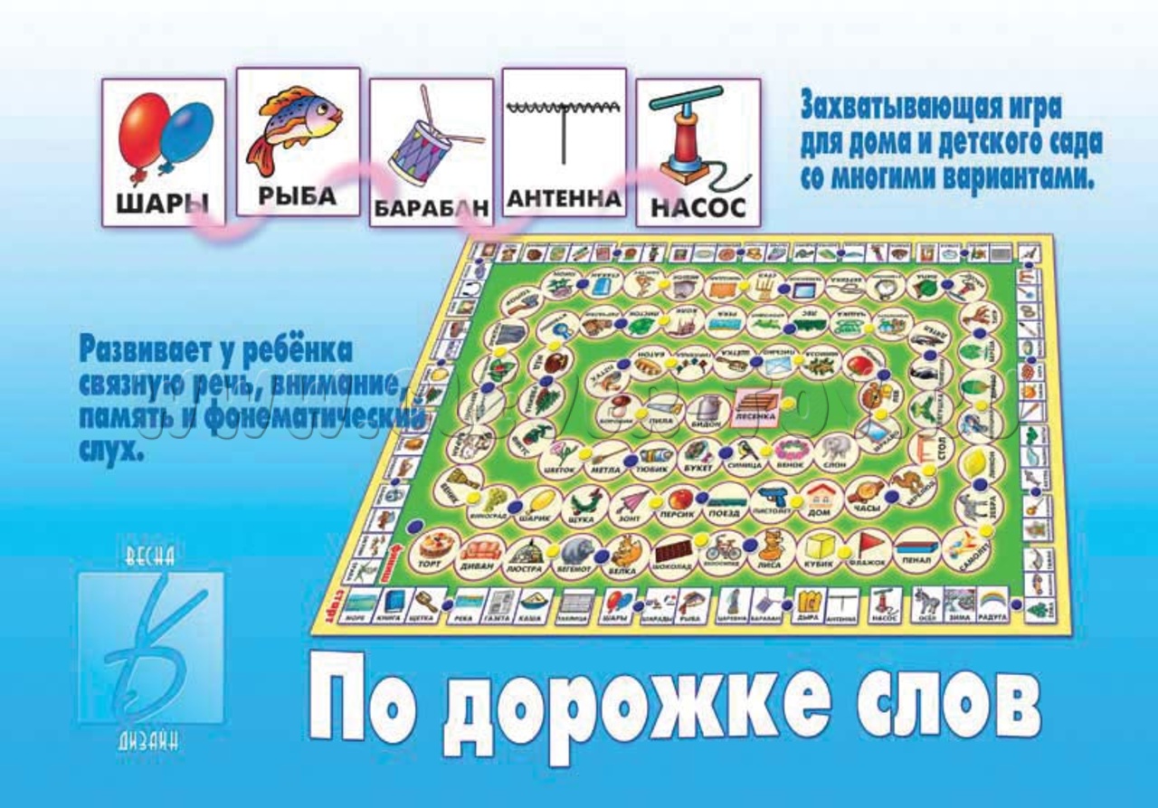 "По дорожке слов" – развивающая настольная игра-ходилка для детей старше 3-х лет, которая поможет малышам развить связную речь, фонематический слух, внимание, память и воображение.