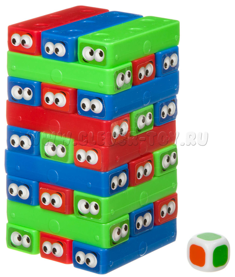 Строим башню, а потом по очереди вытаскиваем блоки и кладем их сверху, пока всё не рухнет. В более сложном варианте игры извлекаются блоки того цвета, что выпал на кубике.