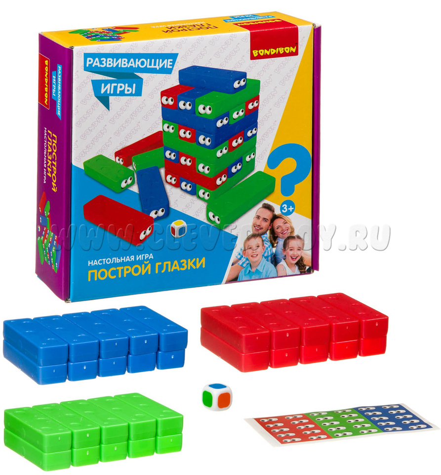 Развивающая игра "Построй глазки" (30 блоков, кубик)