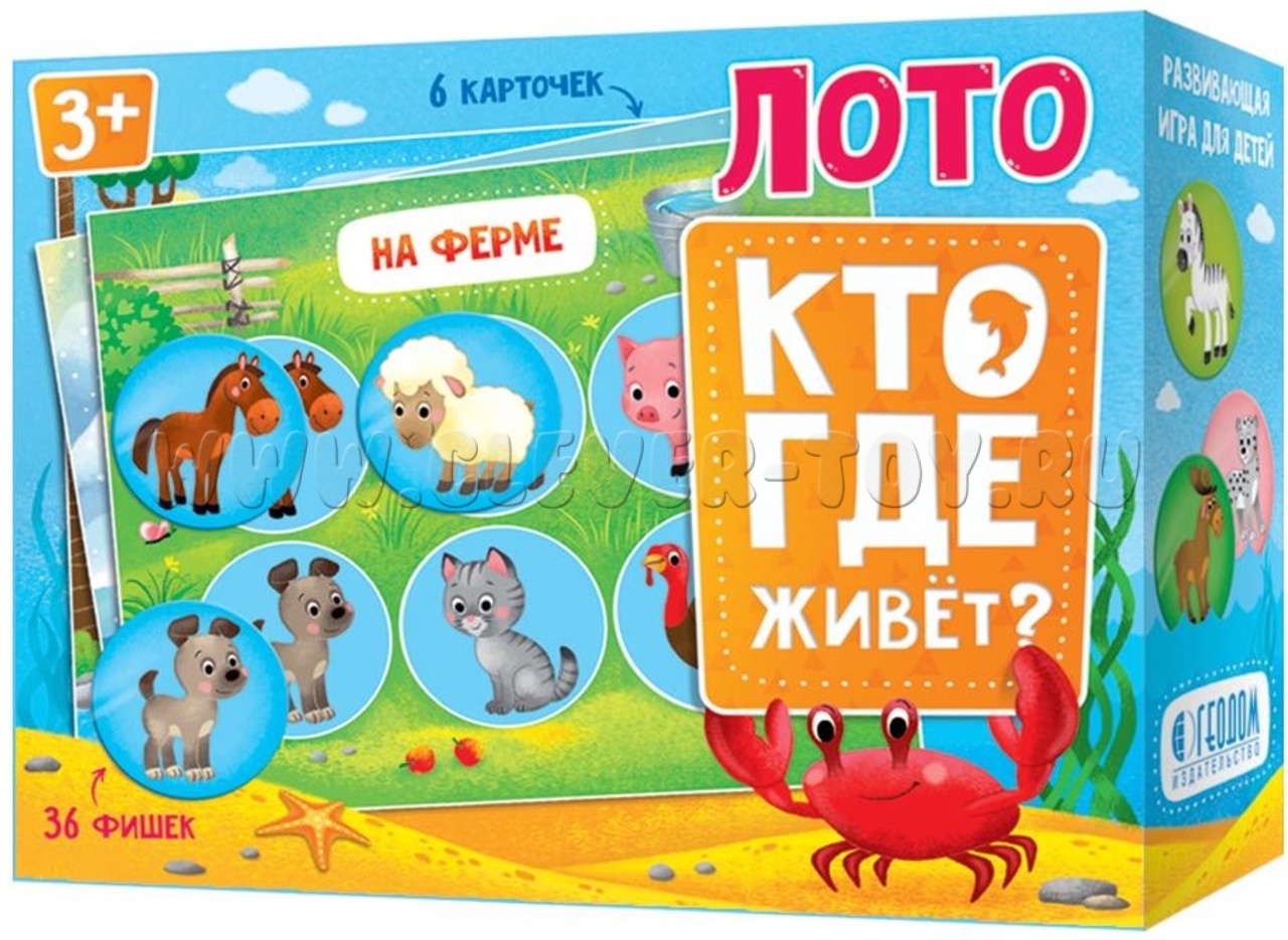 Лото. Кто где живет. 6 карточек 36 фишек.