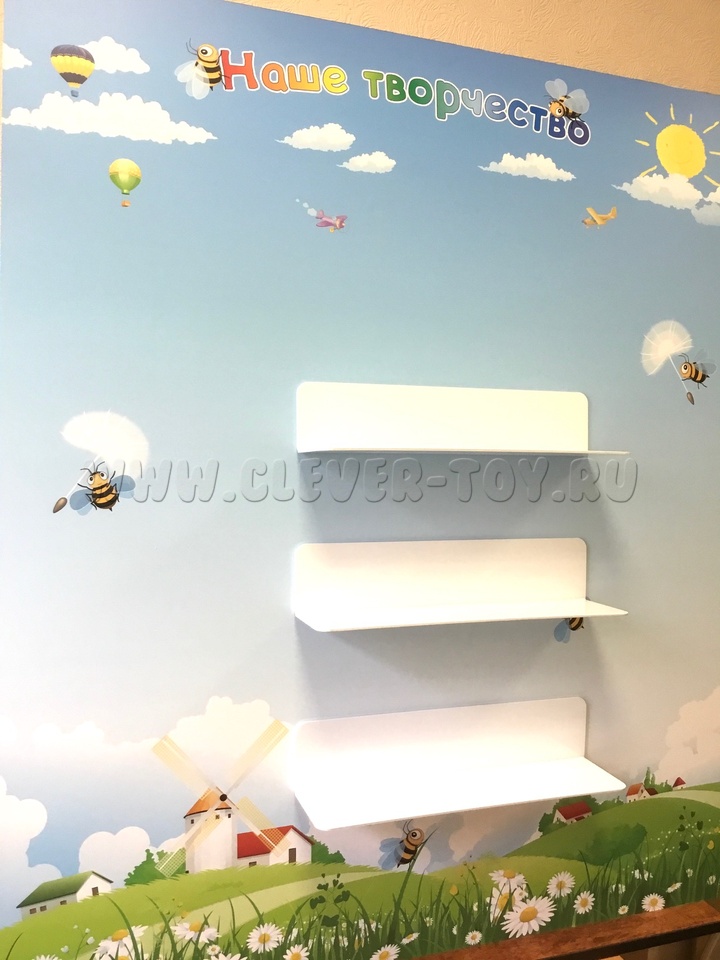 Магнитная полка прекрасно устроится на разных магнитных досках, например, "Наше творчество" для того, чтобы на ней размещались детские поделки.