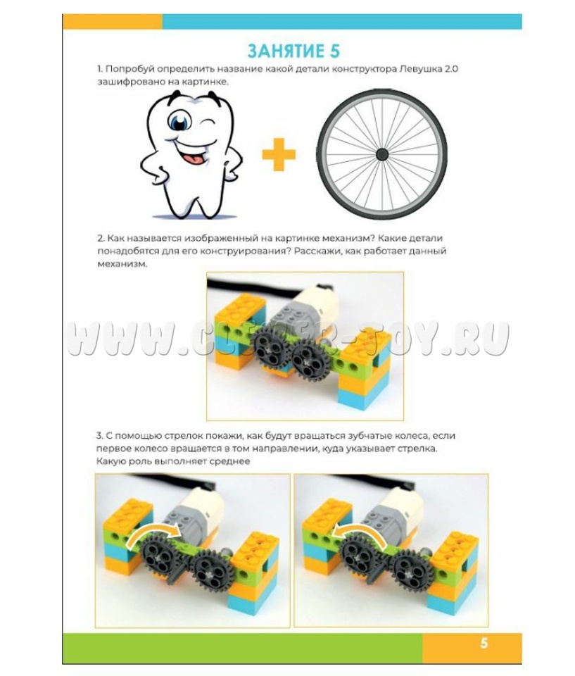 2. Пошаговые схемы сборки - содержит чёткие и доступные инструкции по созданию различных моделей с использованием конструктора Лёвушка 2.0, что способствует развитию творческих и инженерных навыков у малышей.