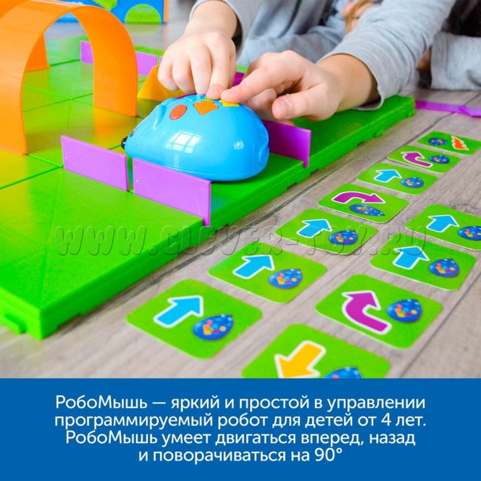 РобоМышь яркий и простой в управлении программируемый робот. Умеет двигаться вперёд, назад, поворачиваться, не имеет дисплея и не требует никаких дополнительных устройств для работы.