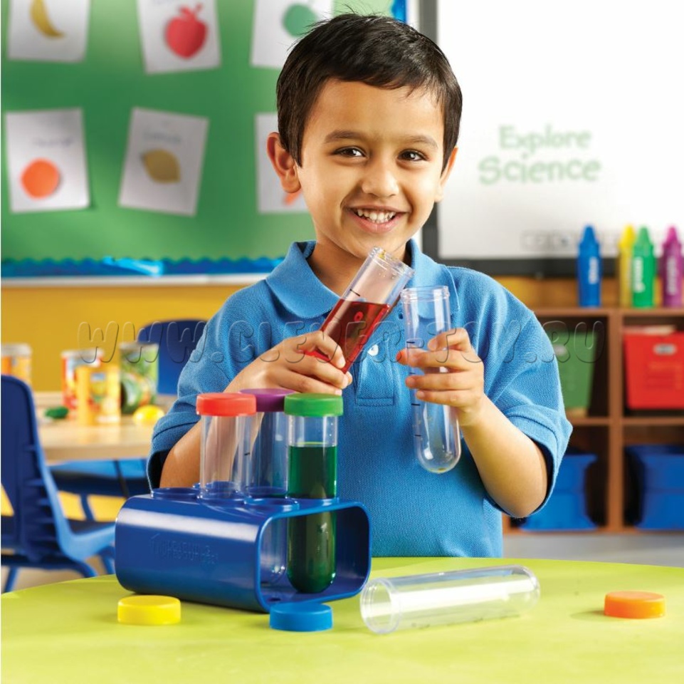 Эксперименты по смешиванию жидкостей и сыпучих веществ с таким оборудованием дадут не только новые знания, но и сделают процесс исследовательской деятельности в детском саду эстетичным и безопасным (пластмассовые пробирки безопасны при температурах от -12° до 93°С).