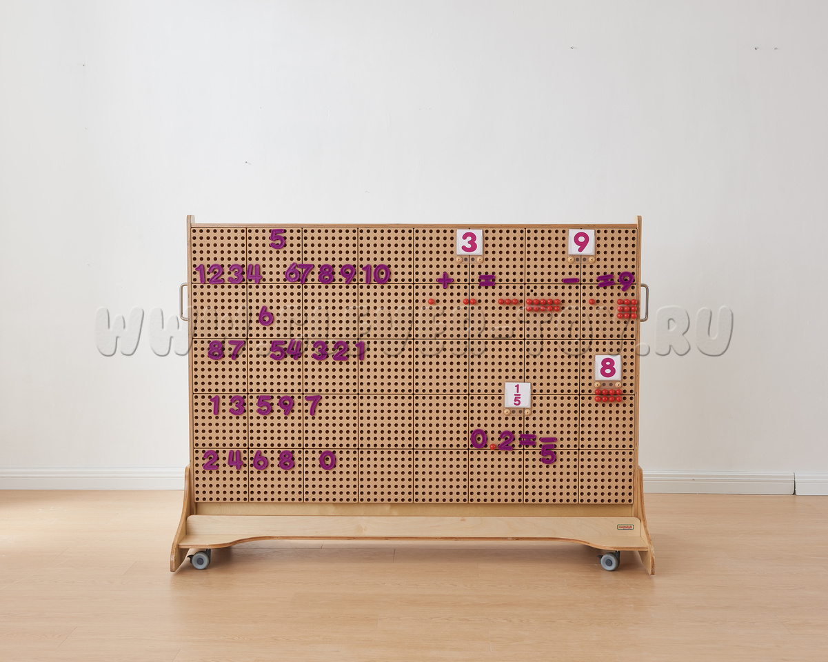 Игровой набор для знакомства с цифрами и математическими знаками, изучения счета и математических действий. Является дополнением к STEM-стене и STEM-столам. Подходит для индивидуальных и групповых занятий. Детали крупные, чтобы маленьким ручкам удобно было их держать и легко вставлять в любую STEM-стену или STEM-стол.